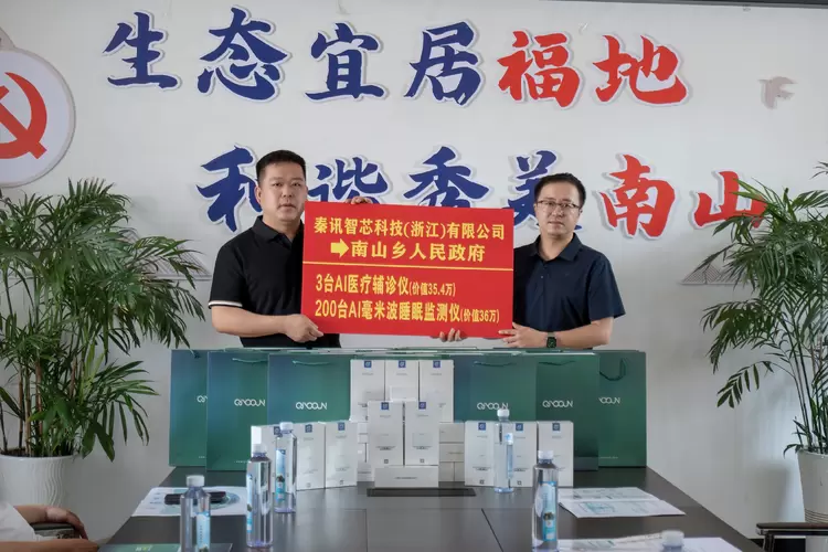 为积极响应国家乡村振兴与健康中国战略部署,精准破解乡镇地区健康服务资源短缺难题,9月29日,秦讯智芯科技(浙江)有限公司(以下简称“秦讯智芯”)向江西省玉山县南山乡捐赠了一批总价值71.4万元的AI康养设备,将AI睡眠监测产品与AI辅诊产品送达基层,以先进科技为留守老人、儿童及全体村民的健康保驾护航。