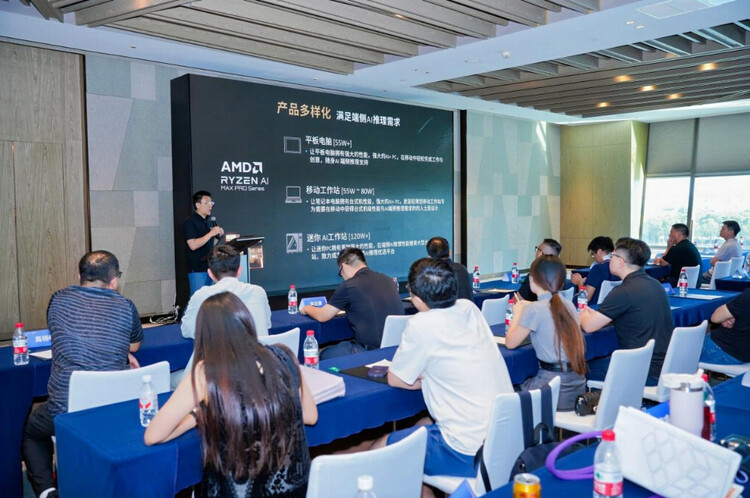 随后,AMD 大中华区家用产品市场总监廖金宁介绍了AMD品牌发展并就锐龙 AI Max+395 处理器的技术优势做了深入解读,阐释了锐龙 AI Max+395 是如何为 SEAVIV 希未 AI 算力中心系列产品提供强大 AI 算力支撑。廖金宁提到,据知名品牌研究公司Brandz最近公布的数据,AMD今年在全球所有行业最具价值品牌的排名中位列第47位,市场影响力在快速扩大,品牌价值在快速提升。AMD 正将AMD 锐龙AI Max+ 395处理器打造成边缘/端侧AI领域的首选推理平台,它采用了CPU+iGPU+NPU三合一架构,16核32线程设计的“Zen 5” CPU核心,最高加速频率高达到5.1GHz,为传统计算任务提供了顶级性能。内置基于RDNA 3.5架构的全新集显Radeon 8060S,其最高规格高达到40组CU单元、2560个流处理器。令人惊喜的是它的超强AI异构算力,UMA架构更是带来的至高96G专属显存。这一性能组合,让 SEAVIV希未产品能在本地流畅运行 Qwen3-235B、Llama4-109B 等大模型,同时将部署成本降至传统方案的 20%,从根源上解决算力与成本的矛盾。此外,AMD 的AI生态伙伴Ripple AI针对该处理器搭建了 “波澜(RIPPLE)开发者平台”,提供工具、文档及远程测试资源。目前已经看到很多值得期待的端侧AI应用正在用锐龙AI Max+ 395进行适配,越来越多的基于锐龙AI Max+ 395的AI端侧落地方案即将到来,AMD也在积极推广并为生态落地提供技术支持。