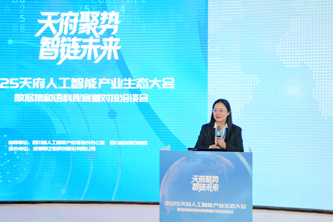 2025年9月28日下午,作为“2025天府人工智能产业生态大会”重要组成部分的“数据集和语料库赛道对接洽谈会”在成都高新区中国欧洲中心成功举行。本次会议由四川省人工智能产业链链长办公室、四川省发展改革委指导,成都数之联科技股份有限公司承办,旨在发挥链主担当,汇聚政府领导、学术专家、产业链上下游企业及投融资机构代表,深入交流高质量数据集的建设路径与产业机遇,携手推动人工智能产业高质量发展。
