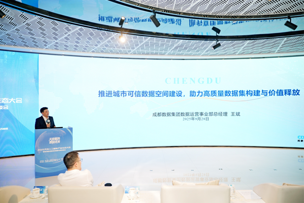 企业路演环节,中国电信成都分公司大数据和AI中心副总经理罗莉、成都数据集团数据运营事业部总经理王斌、成都民航空管科技发展有限公司技术中心副主任郭春波、成都中启易联科技有限公司负责人刘晓红分别从数据基础设施、城市数据空间、航空特定场景数据集、多模态语料解决方案等维度,展示了数据产业链各环节的创新成果与实践经验。