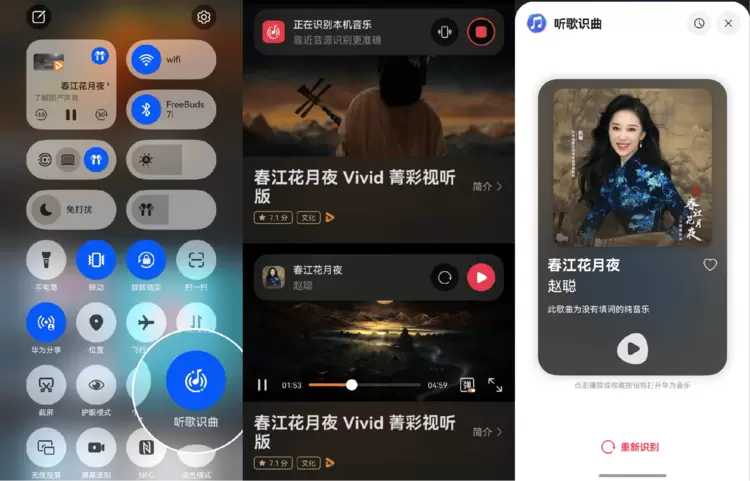 “听歌识曲”功能,则让旅途中的每一次“偶遇好歌”都不再错过。旅行中刷短视频时听到动人的背景音乐,只需下拉手机状态栏,点击“听歌识曲”,无需跳出当前页面或外放录音,就能快速识别歌曲信息。识别成功后,一键即可跳转到华为音乐页面,不仅可以直接收藏歌曲,还能从识别点继续聆听,让旅途中的每一段心动旋律都不被错过。