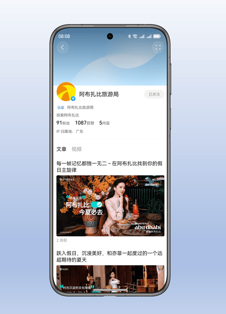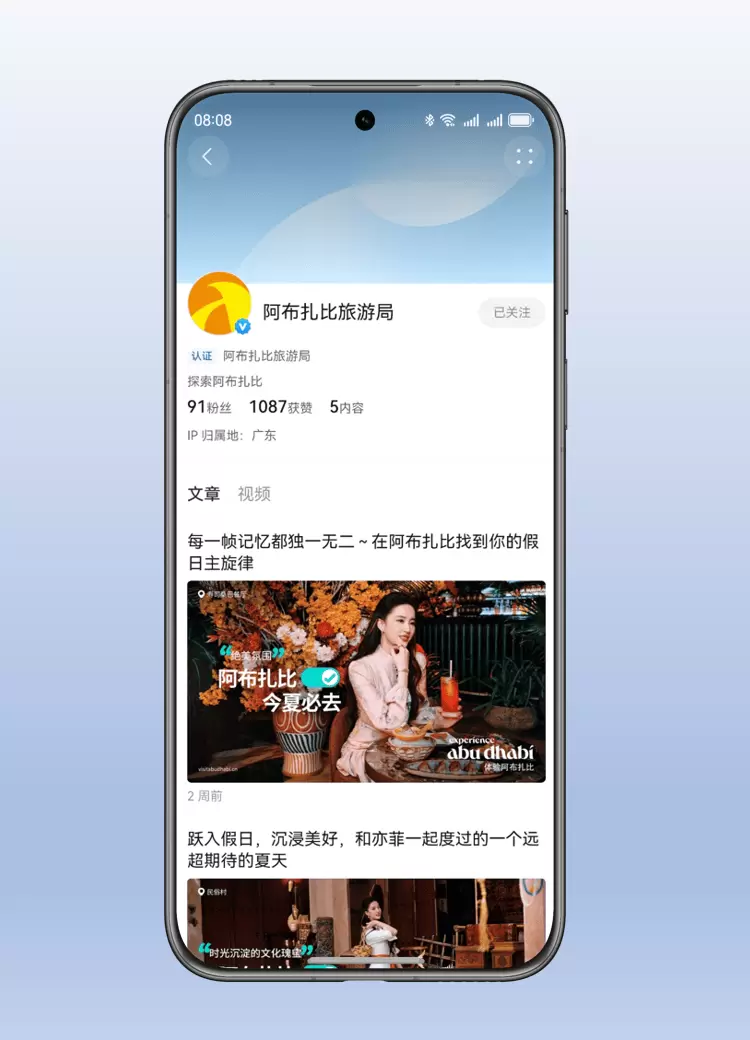 大家可以直接打开华为浏览器,选择旅游频道,即可在置顶文章中找到阿布扎比文化与旅游部的精选内容并关注。还可以在底部视频tag或打开任意一篇图文或视频内容详情页,点击图文或视频详情页右上角的搜索图标,在搜索框内输入【阿布扎比旅游局】,或相关视频标题找到并关注阿布扎比旅游局的账号。