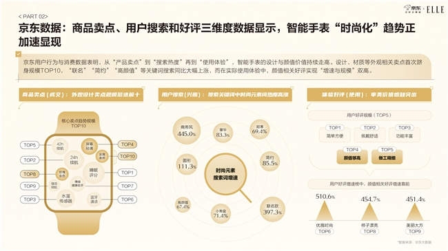 基于主客观数据的核心洞察,京东消费及产业发展研究院联合京东数码3C与时尚杂志《ELLE》共同发布《京东2025智能手表时尚趋势白皮书》(以下简称“白皮书”),从社会观察、用户消费行为、时尚穿搭风格等多重维度,系统呈现智能手表从数码工具向“生活方式符号”的演变之路。