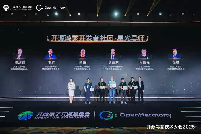 人才是生态发展的核心动力。本届大会还致谢“开源鸿蒙技术俱乐部·星光导师”、“开源鸿蒙开发者社团·星光导师”、“开源鸿蒙技术俱乐部·星光贡献者”、“开源鸿蒙开发者社团·星光贡献者”等师生,完整呈现了从引领到实践、从传承到突破的人才成长路径,彰显了开源鸿蒙在高校中日益深厚的人才根基。