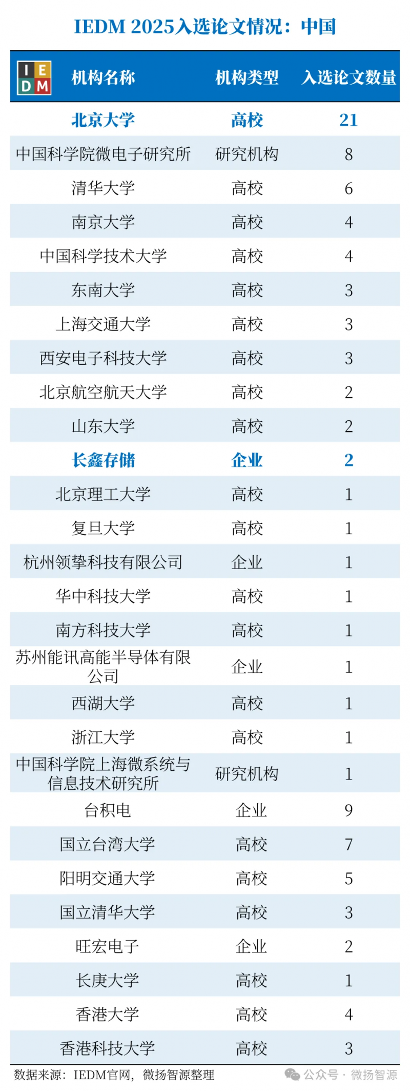 【首发|IEDM 2025放榜】北京大学以21篇论文蝉联全球第一,长鑫存储领跑产业界