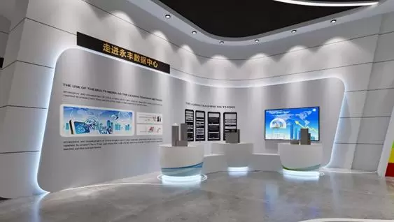 为了将北京电信永丰IDC应用侧能力更好的展现出来,烽火对其原有的接待中心也进行了升级改造,升级成为多功能展示中心。展示中心保持了其功能设计的完整性和连续性的同时兼具了形式多样化。使用烽火自研的FitI-VOM(交互式可视化综合展示平台)的多种扩展应用,可配置全息投影表现方式,展示数据中心核心设备,业务联动等内容,利用干涉和衍射原理记录并再现物体真实的三维图像,产生奇幻动感的交互体验。展示中心在改造后,能够达到“三化”效果,即空间规划完备化、实时数据可视化、交互展示定制化,整体提升数据中心的展示能力。