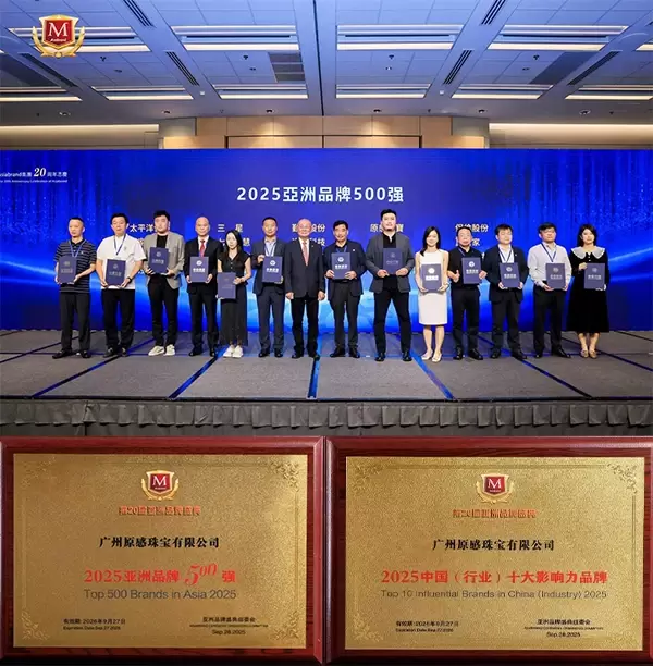 继2024年首度入选“亚洲品牌500强”后,原感珠宝今年不仅再度登榜,更一举斩获“中国行业十大影响力品牌”奖项。这一“双荣誉进阶”,标志着原感已从“榜单新锐”蜕变为“行业标杆