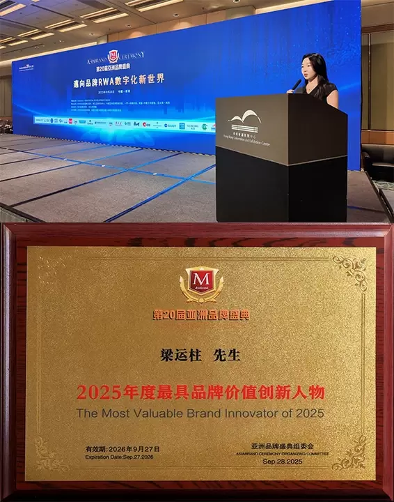 原感董事长梁运柱先生荣膺“2025年度最具品牌价值创新人物”,原感总经理刘亚霞代其登台受奖时表示“这份荣耀,属于每一个以创新传承东方美学的原感人,属于每一个让世界看见中国之美的追光者。”同时该奖项印证了原感多年来坚持的“文化传输与商业价值双驱动”理念的成功实践。