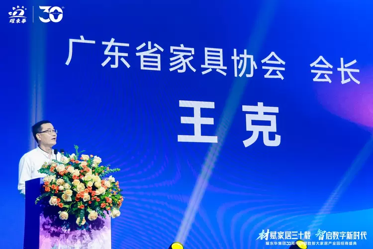 广东省家具协会会长王克先生发表《三十载风雨兼程,耀东华正阔步迈向新征程》的主题讲话,他认为“三十载风雨兼程,耀东华作为我省优秀民营家具原辅材料企业的代表,在中国家具发展进程中,争当材料创新的实践者、产业变革的引领者,展现出艰苦奋斗的创新精神,卓越不凡的匠心精神,成为家具贴面饰面材料行业的一面旗帜,可喜可贺!”