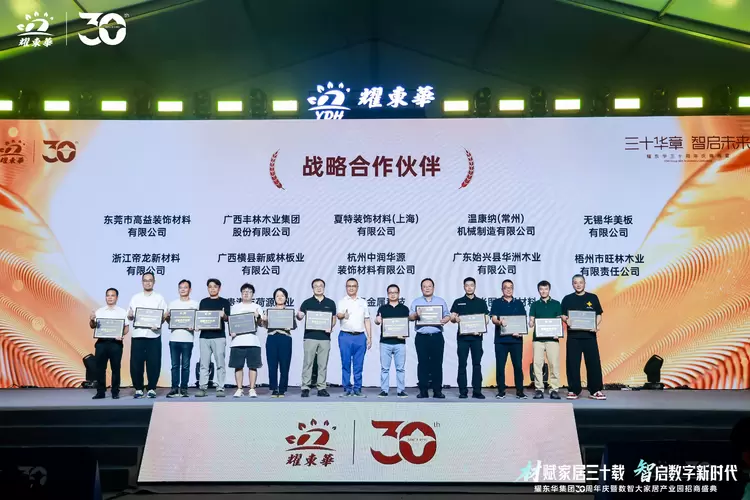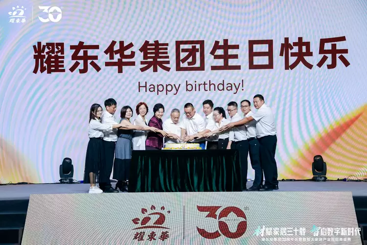 2025年9月28日,耀东华集团迎来创立三十周年的重要时刻。在耀东华科技产业园内,一场以“材赋家居三十载,智启数字新时代”为主题的庆典隆重举行。500余位嘉宾齐聚一堂,行业协会领导、海内外合作伙伴代表、高校产学研专家、全球供应链代表以及社会各界朋友,共同见证这一里程碑式的荣耀时刻。