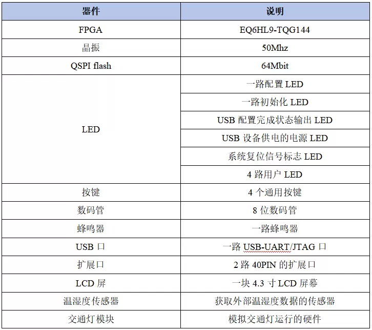 ·FPGA板卡资源有:8位LED数码管、USB转UART/JTAG口、蜂鸣器、4.3寸LCD、两路2.54mm间距的40PIN标准IO扩展口;