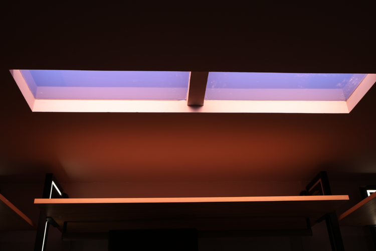 针对衣帽间和地下室这两个没有自然光线的区域,易来和设计师赖旭东使用了易来的明星产品青空®灯。青空®灯通过模拟瑞利散射效应,能在室内完美复刻出雨霁蓝的视觉感受,极大地提升了空间的开阔感,还可以根据时间自动调节色温,模拟从清晨到日落的阳光变化。在地下室,青空®灯更是彻底打破了地下空间固有的封闭与沉闷感,仿佛开了一扇天窗,将自然的慰藉带入地下,让每一次在此的休闲娱乐都伴随着阳光般的好心情。