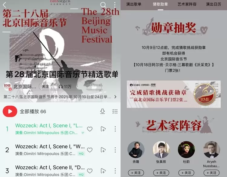 即日起,打开QQ音乐搜索“北京国际音乐节”,即可预约观看精彩演出,探索古典专区全新体验。让我们共同见证传统与未来的精彩对话,感受古典音乐在数字时代焕发的新生机,在QQ音乐古典专区随时随地开启你的古典音乐之旅!