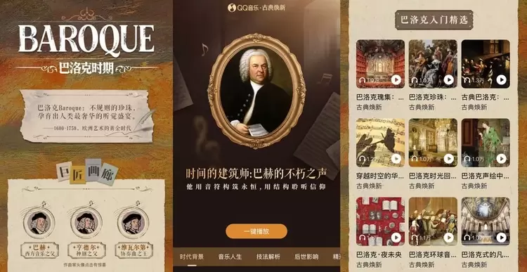 在古典届音乐盛事启幕之际,QQ音乐古典专区也迎来重磅焕新升级,打造了一座“可随身携带的古典音乐数字博物馆”。古典音乐的发展源远流长,从巴洛克时期与自然触碰的灵动、到古典主义时期严谨的典雅、再到浪漫主义时期自由的情感绽放、延展至二十世纪后更多灵感的绽放,古典音乐持续为音乐家与行业带来源源不断的滋养。QQ音乐将这些散落在不同时期的海量音乐内容,重新进行专业归纳整理,重磅上线五大重大古典音乐发展时期,让这些蕴含丰富精神文明的音乐瑰宝重新焕发其时代光辉,让各个时代的音乐特色一目了然。通过对古典音乐大拿的精辟解读和精选歌单的沉浸式聆听,你可以在每个音符中感受历史的痕迹。再加上富有趣味的猜歌互动,让你在轻松的氛围中,既能享受音乐的美妙,又能在不知不觉中增添对音乐的理解与知识。每一段旋律,都在悄悄打开你心中的音乐宝盒,让艺术体验更具参与感。