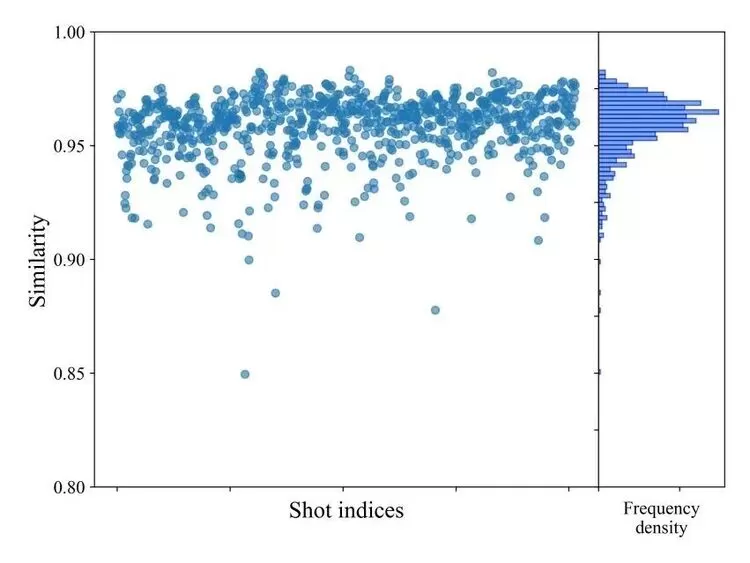 测试集中所有放电的演化相似性度量及其分布,每个数据点代表一次放电