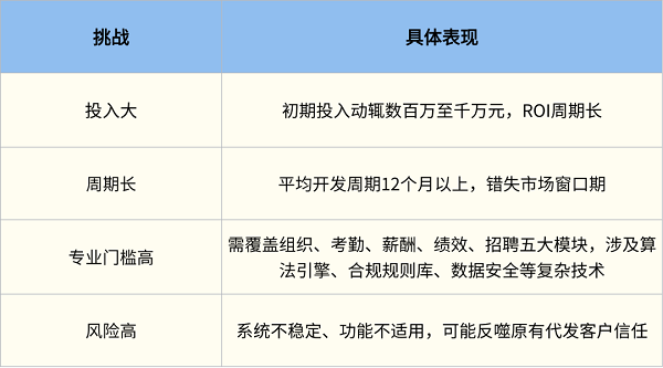尽管趋势明确,但银行自建HR SaaS系统面临四大现实困境: