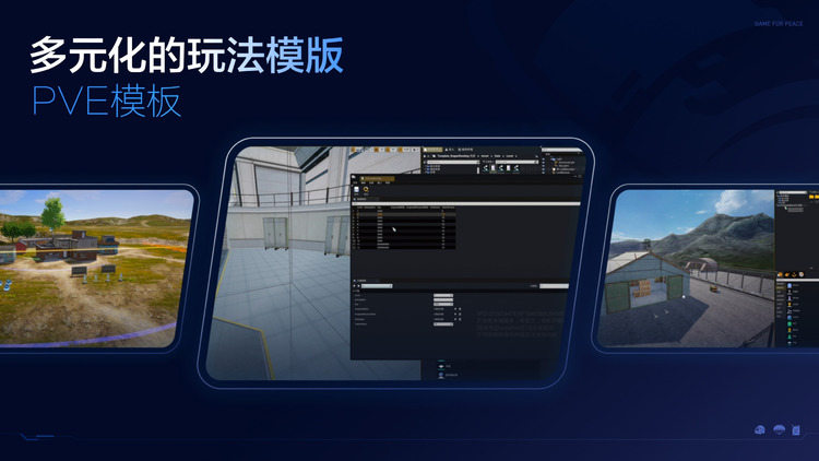 绿洲启元工坊编辑器基于成熟游戏引擎开发,采用Lua作为脚本语言,既保证了开发自由度,又降低了学习门槛。编辑器提供海量的官方美术资源、丰富的玩法模板和集成功能,开发者可以直接使用《和平精英》主玩法已有的社交、语音、观战、信号圈等系统功能。