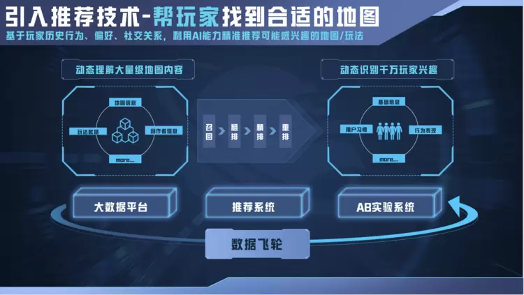 同时,为方便用户从海量玩法中发现玩法,绿洲启元引入了玩法推荐算法模型,结合数据优势,为玩家推荐玩法,模型不断学习玩家游玩数据,持续迭代推荐效果。