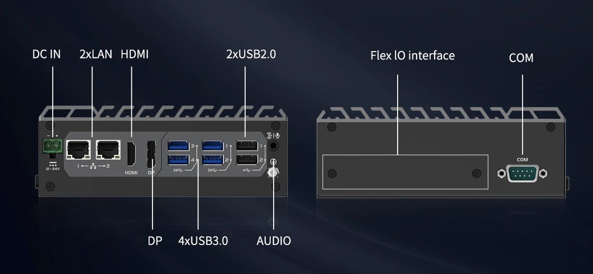 JEC-3511配备多样化接口,满足工业现场多元接入需求,提供多达6个USB接口(4xUSB3.0 + 2xUSB2.0)、2个千兆LAN口、HDMI+DP双显,同时支持 1个RS485串口(最多可扩展至6个串口),并预留后IO扩展挡片位,便于用户定制拓展。