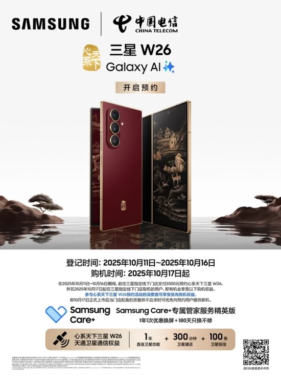 心系天下三星W26现已正式开启预约,即刻加入尊贵序列,体验科技与美学的经典融合,见证高端格局的再一次进阶。