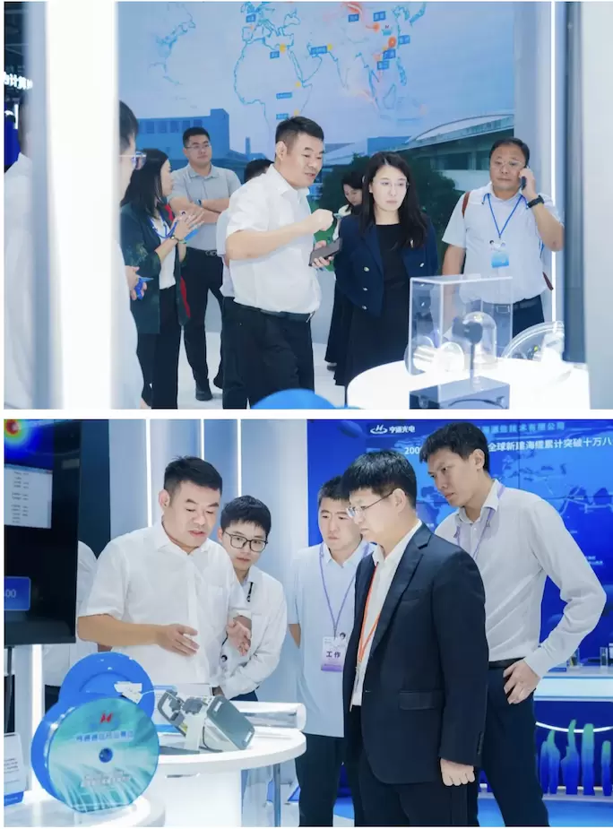 亨通光电携前沿光纤、数据中心网络互联、海洋通信系统及浸没式液冷等核心产品及解决方案参加本次活动。中国移动供应链管理中心副总经理崔芳,中国移动网络事业部副总经理顾宁伦,中国移动贵州公司党委书记、董事长、总经理张丽等莅临亨通展台参观指导。