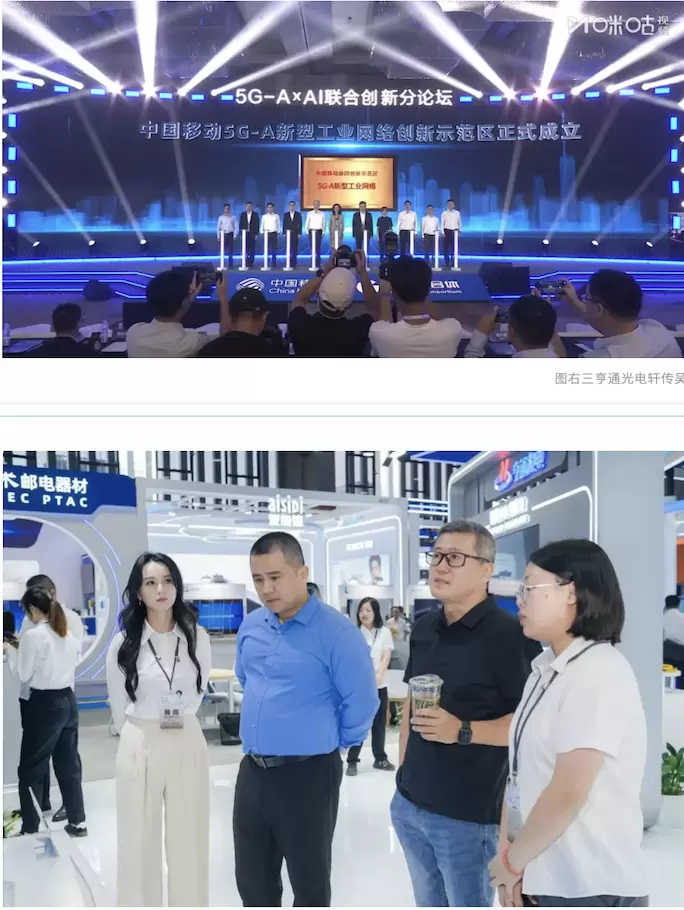会议期间,亨通光电副总经理轩传吴受邀出席“5G-A×AI联合创新分论坛”,在炉边对话环节轩传吴与中国移动研究院网络与IT技术研究所副所长围绕“算网智一体化解决方案,赋能智慧生产”展开深入交流,并共同见证了中国移动5G-A新型工业网络创新示范区正式成立,展现了亨通在推动工业智能化转型中的积极角色。