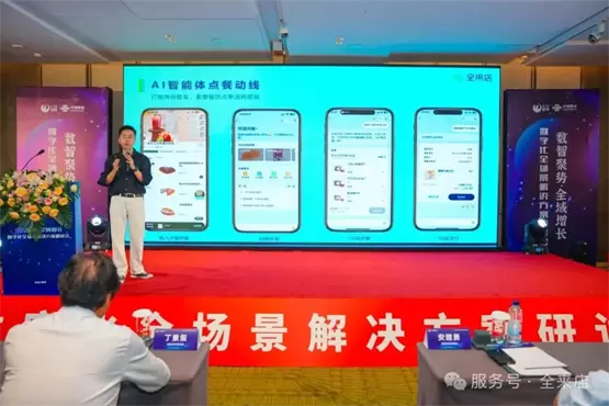 在西安举办的“2025数字化全场景解决方案研讨会”上,全来店与西安联通、优海、爱普生等伙伴联合发布了“云-链-端”生态解决方案套餐。全来店客成中心负责人林锐系统阐述了以会员收益为核心、打通前后端系统的全景方案,其AI能力覆盖需求预判、智能点餐、会员互动及智能订货等多个核心运营环节,旨在通过降低技术使用门槛,让餐饮老板回归经营本质。