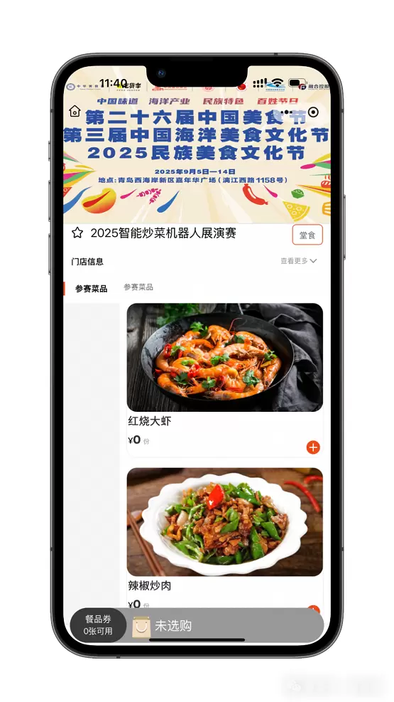 在青岛举行的第二十六届中国美食节上,全来店作为独家SaaS系统服务商,为“2025全国智能炒菜机器人设备展演赛”提供了全流程数字化保障。