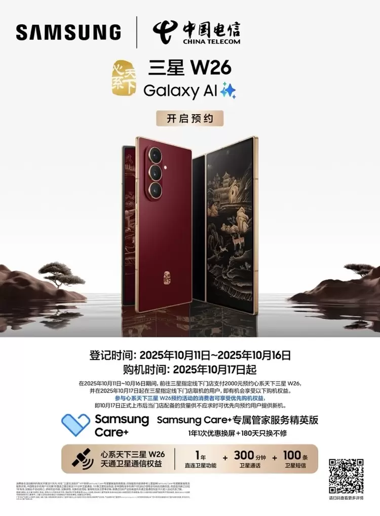 心系天下三星W26现已正式开启预约,即刻加入尊贵序列,率先体验科技与美学的融合,见证高端格局的再一次进阶。