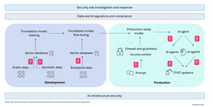 Omdia首席分析师苏廉节在论坛演讲时表示,企业在构建、部署与使用AI技术的过程中,安全威胁正呈现“纵向贯穿全链路,横向蔓延多场景”的复合演进趋势,AI系统需要全方位防护与覆盖。