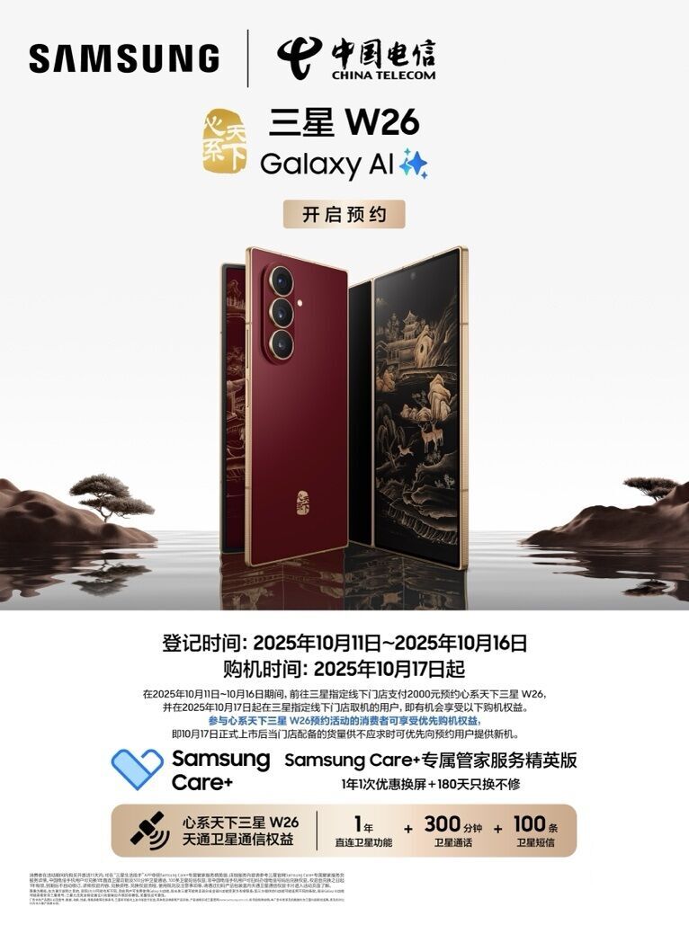 影像是科技的温度,也是文化的回响。心系天下三星W26凭借2亿像素的精细描摹,让光影细节纤毫毕现;AI编辑功能则赋予画面更多灵动神采;而大屏的沉浸视野,则让记录与创作的过程更为从容,让光影不止于记录,更升华为表达。以匠心致敬传承,以创新拓界未来,心系天下三星W26现已正式开启预约,邀您共赏科技与风雅交织的尊贵时刻。