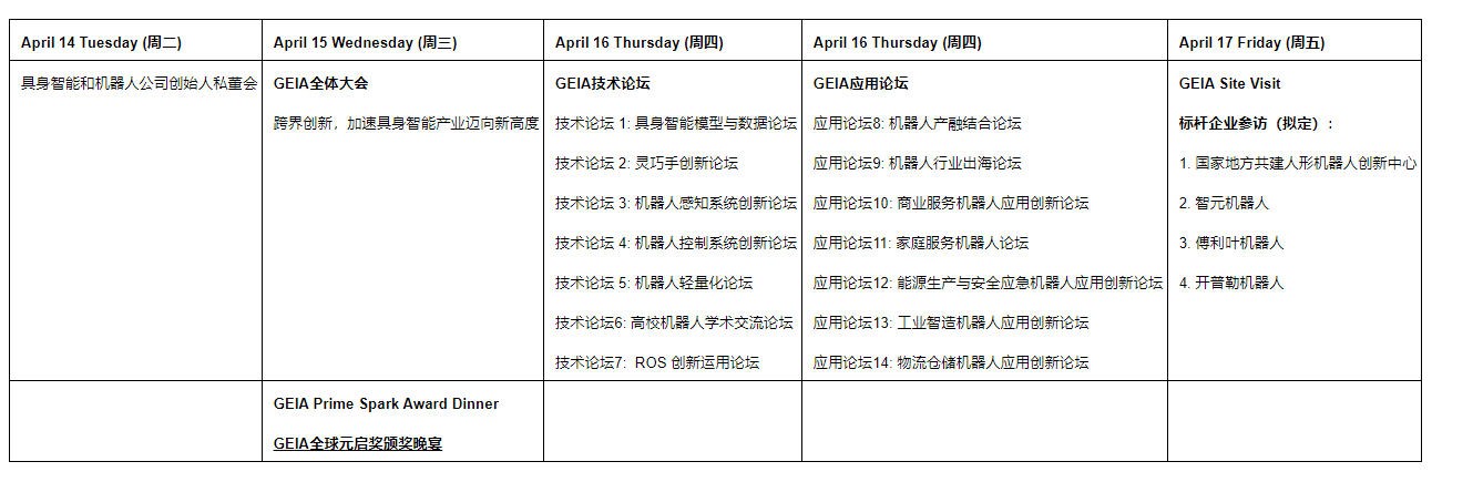 在国内外权威行业机构的支持下,由全球具身智能加速器(GEIA)主办的GEIA亚太具身智能与人形机器人创新周(GEIA Asia 2026)将于2026年4月14日至17日在中国上海召开。