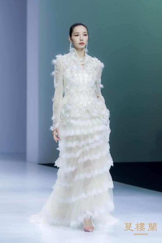 破局之道:从秀场到生活现场的优雅转型值得关注的是,本季系列中上下装比例的显著提升,透露出品牌更深层的战略意图。当一件缀满水晶的华服与一套适合都市穿着的改良套装并列呈现,蔓楼兰实际上在回答一个时代命题:如何让东方美学不再局限于特定场合,而是成为当代女性从容切换于工作、社交与重要时刻的日常选择。这种从“仪式感”到“生活感”的转身,或许比任何秀场上的华美瞬间都更具革命性。