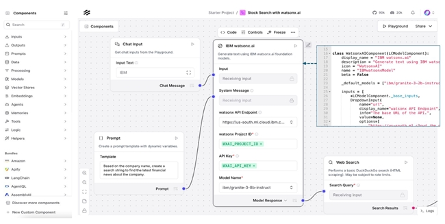 ·Langflow 与 watsonx Orchestrate 的集成使开发人员能够使用拖放式的可视化构建器来构建智能体和流程。