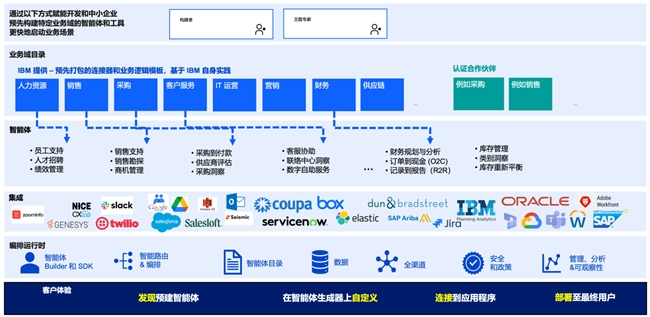 ·除了现有的人力资源、采购和销售等预构建的业务域智能体,IBM还将发布财务和供应链等新的预构建智能体,协助企业更高效、更专业地应对常见业务挑战。