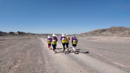 戈壁玄奘之路地处瓜洲,年降水量不到50mm,风沙大、紫外线强度大,昼夜温差大,地形也复杂,有砾石戈壁、盐碱地、流动沙丘和雅丹土丘,徒步消耗是平路的3倍。20年来,参赛者4天徒步121公里,很多区域无信号,不仅仅是体能挑战,还要忍耐心理和自然环境的极限挑战。尤其在无信号区域,安全保障更显重要。