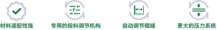 专用的投料调节机构,搭配成膜大小辊,可适配不同材料、不同颗粒大小的物料,防止进料过多出现卡辊现象,快速成膜;