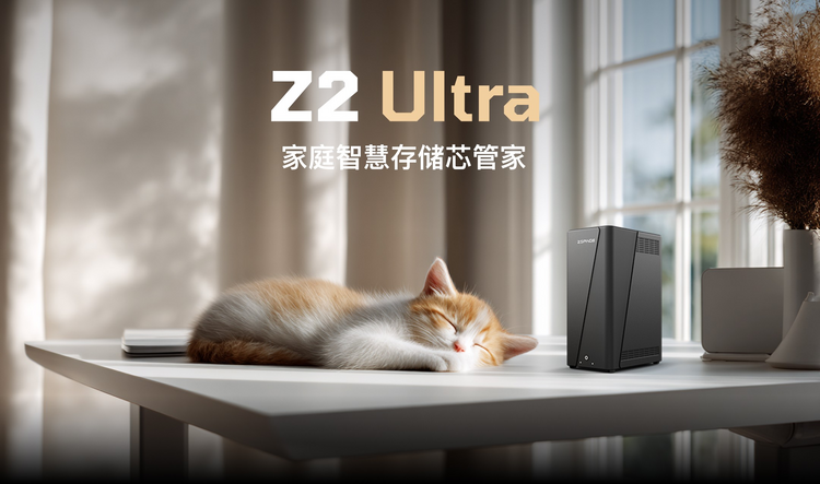 其创新的掣风散热系统,通过直通式风道与悬浮式硬盘架的协同设计,既确保了系统持续稳定运行,又将工作噪音控制在图书馆级的静谧水准,让设备能与卧室环境和谐共存。将强劲性能蕴藏于优雅简约的外观之下。Z2 Ultra成功打破了技术产品与家居环境的界限,无论是放置在客厅影音区还是书房工作角,它都能静默地守护着家庭的数字记忆,成为智能家居中不可或缺的“数据基石”。