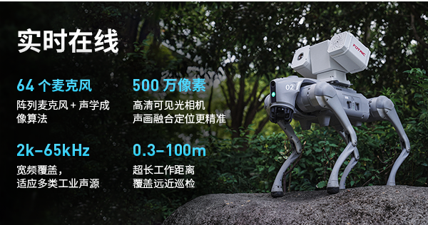 这款产品以轻量化(420g)、易集成的嵌入式设计,不仅能为机器人或机器狗赋予“听觉感知”,更能作为独立的声学成像传感器,灵活部署于智能工厂、能源管网、电力运维、机械设备等各类工业场景。