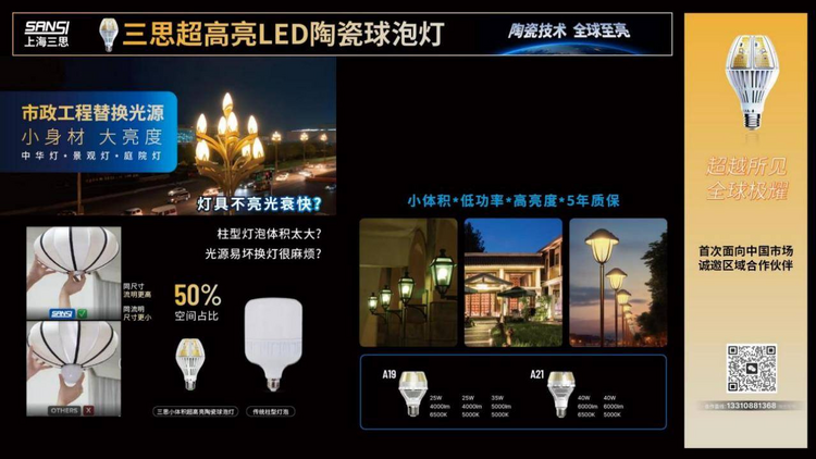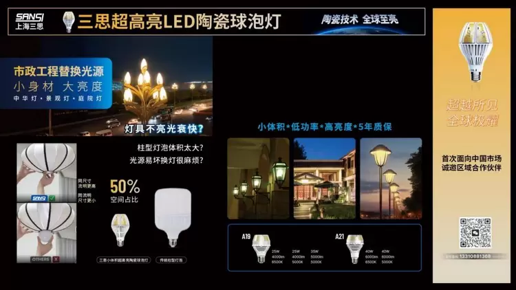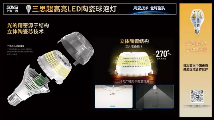 超越所见∣三思重磅发布10000流明A21陶瓷球泡高端光源,“陶瓷芯”填补全球市场空白