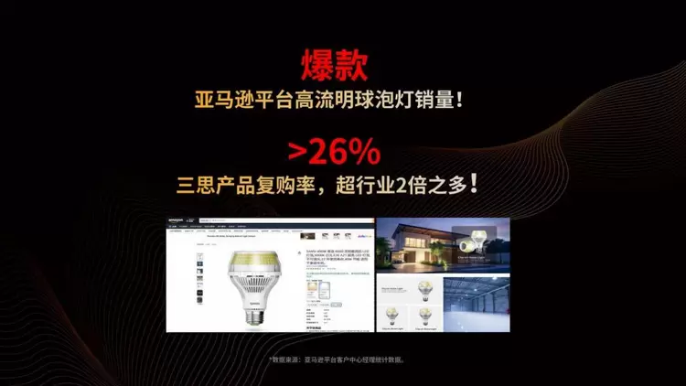 与此同时,该系列产品在美国亚马逊平台高流明球泡灯品类中的复购率26%,达到行业平均水平两倍以上,成为该品类的热门产品,确立了其在市场的有力地位。