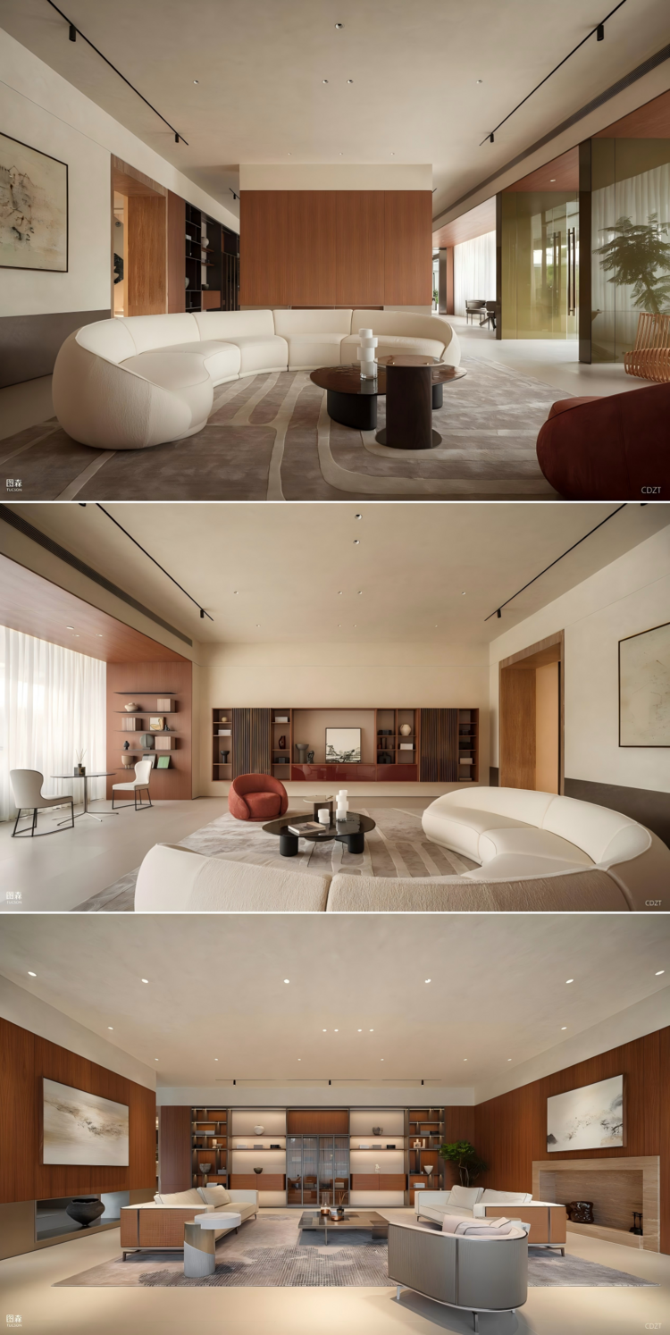 简洁的线条与纯粹的色调为基础,构建出宁静而富有格调的空间氛围。大量运用浅色系、咖色系等中性色彩,交织出沉稳亲和的底色。流畅利落的线条勾勒出空间理性秩序的轮廓。材质上,木质的纹理、金属的光泽、布艺的柔软触感相互交织。现代主义理念的生动呈现,在简洁的表象下,蕴含着对品质、美学与生活态度的深刻追求。