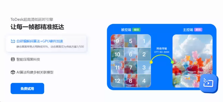 ToDesk凭借三重核心技术,构筑了流畅远程体验的夯实基础;这三大技术分别是ZeroSync®传输引擎、音视频编解码器以及OTT SD-WAN智能网络优化技术。