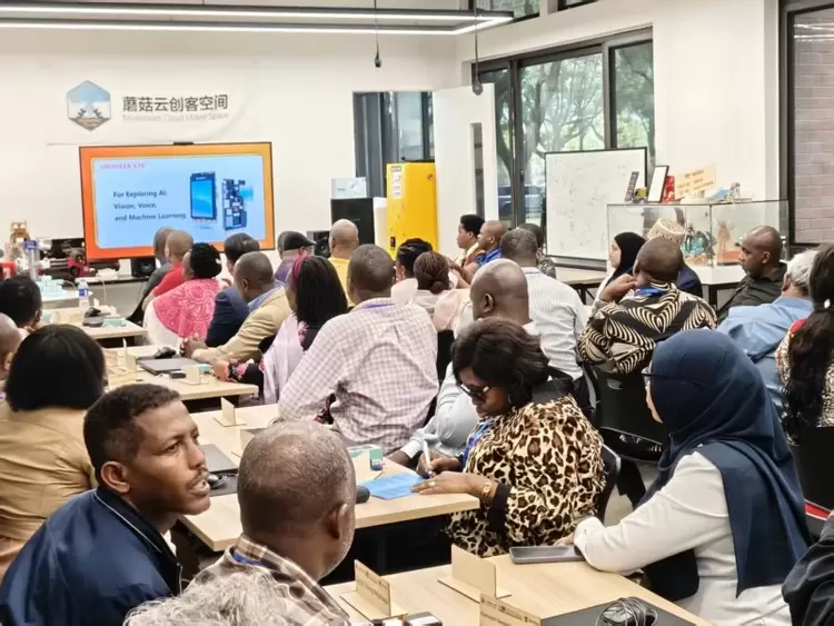 2025年10月17日下午,由教育部国际合作与交流司、教育部教师工作司、上海市教育委员会指导,联合国教科文组织教师教育中心、上海师范大学主办的“2025年中非STEM教育教师培训合作计划”专题培训之“AI Empowering STEM Teacher Education” 在蘑菇云创客空间顺利开展。来自坦桑尼亚、加纳、南非、肯尼亚、埃塞俄比亚、乌干达、卢旺达、赞比亚、尼日利亚、马拉维、科特迪瓦的非洲11个国家近60位STEM领域的非洲国家教育官员、教师教育者、专家学者及中小学教师齐聚一堂,沉浸式解锁了以 “行空板 K10” 为核心的 AI 教学实践新路径。