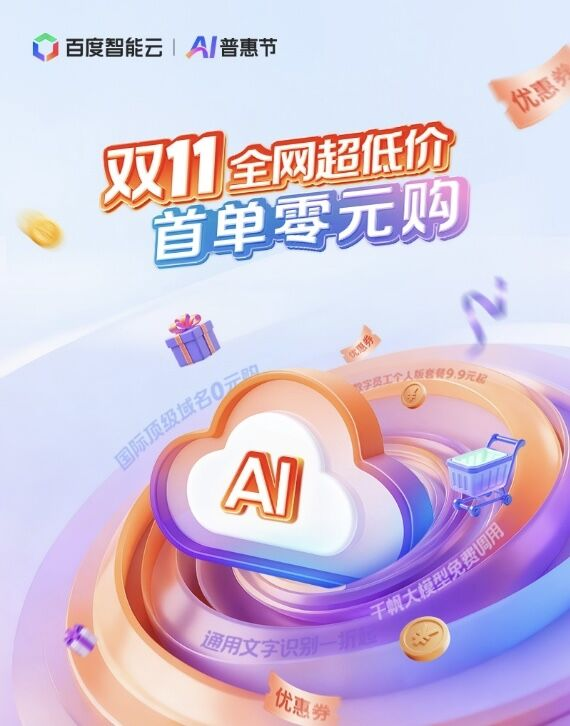 10月17日,百度智能云宣布联合多家合作伙伴在行业内率先发起双十一AI云普惠活动,以“全网最低价,首单零元购”的大幅度让利政策,让中小企业和个人开发者可以借助百度智能云全栈AI云能力,实现业务低成本快速创新。