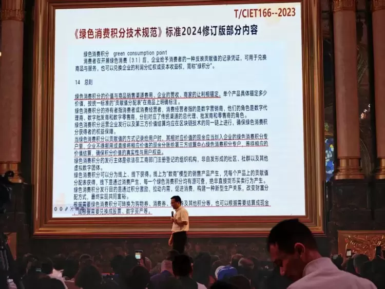 他深入解析了绿色消费积分作为贡献值记录凭证的应用标准、价值结算机制和技术规范。他指出,绿色消费积分有效解决了不同业态间积分通兑的难题,堪称“财富分配的转换器”,而通证则是分配的工具。