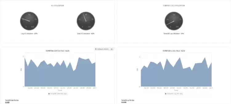 ● 可视化展示 IO 利用率、TempDB 状态等关键指标,支持趋势分析