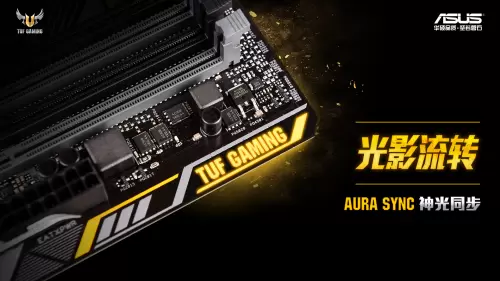 这款主板采用了军事迷彩元素加上兰博基尼黄配色,外观设计新潮,突显其沉稳、疾速的电竞游戏风格。特别是在PCB边缘,它还搭配了炫酷的AURA RGB电竞氛围灯,可提供约1680万种色彩选择,再加上静态、呼吸、闪烁、彩虹、多循环、彗星等12种丰富的灯效预设模式,观赏性与可玩性十足。同时,这款主板还支持AURA SYNC神光同步技术,并板载AURA SYNC设备接针,可与显卡、内存、键盘、鼠标和机箱等设备联动,打造浑然一体的整机光效。