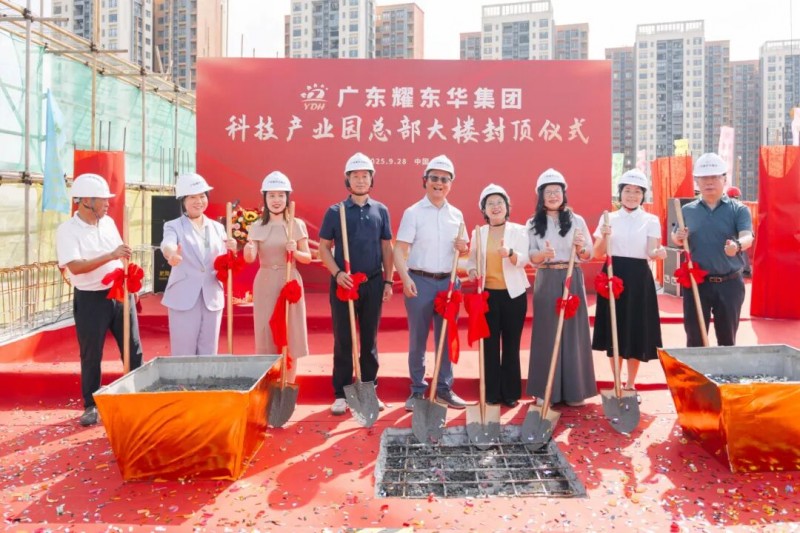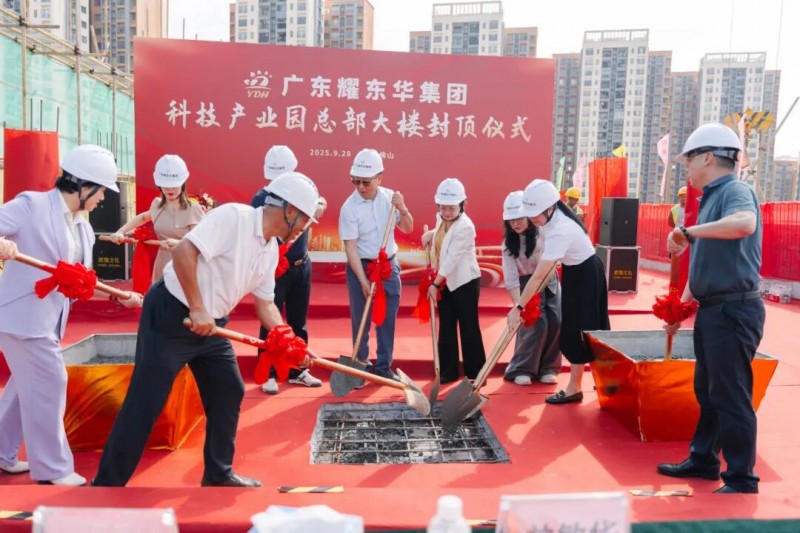 2025年9月28日上午,耀东华科技产业园内彩旗飘扬、礼炮齐鸣,广东耀东华集团科技产业园总部大楼封顶仪式在此隆重举行。这一里程碑时刻,标志着耀东华集团迈向“数智转型、产业集聚”的新阶段,也为企业成立30周年献上了一份厚礼。本次封顶仪式吸引了众多政府领导与行业嘉宾亲临现场,现场气氛热烈非凡。