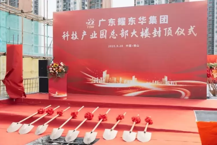在封顶仪式上,耀东华集团董事长曾敏华表示:“科技产业园不仅是耀东华总部的新基地,更是推动产业协同、服务定制家居生态的重要平台。接下来,总部大楼将进入装修环节,预计2026年投入使用,我们将依托里水优越的区位与产业环境,携手上下游伙伴,共同打造从研发到销售的一站式服务体系,为家居行业高质量发展贡献力量。”